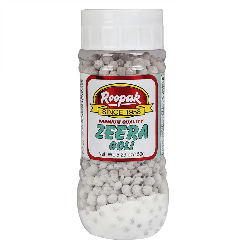 Roopak Since 1958 prepares all its mouth-fresheners and related products with maximum care. Our FSSAI certified zeera goli in India is prepared using rich quality ingredients such as Refined Sugar, Dry Mango Powder, Cumin, Iodized Salt, Black Pepper, Dry Ginger, Lemon Extract, Black Salt, & Long Pepper. Apart from its 100% pureness, it makes sure to leave its mark in your kitchen with its unique taste. It is manufactured responsibly, using the highest quality of ingredients and market practices.
